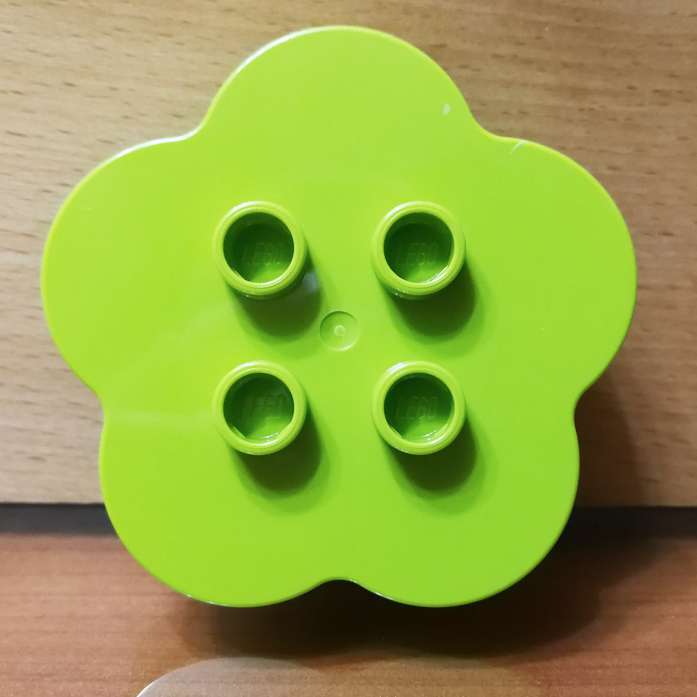 Nová DUPLO kostka ve tvaru velké kytičky, která se vyrábí pouze ve světle zelené barvě.
