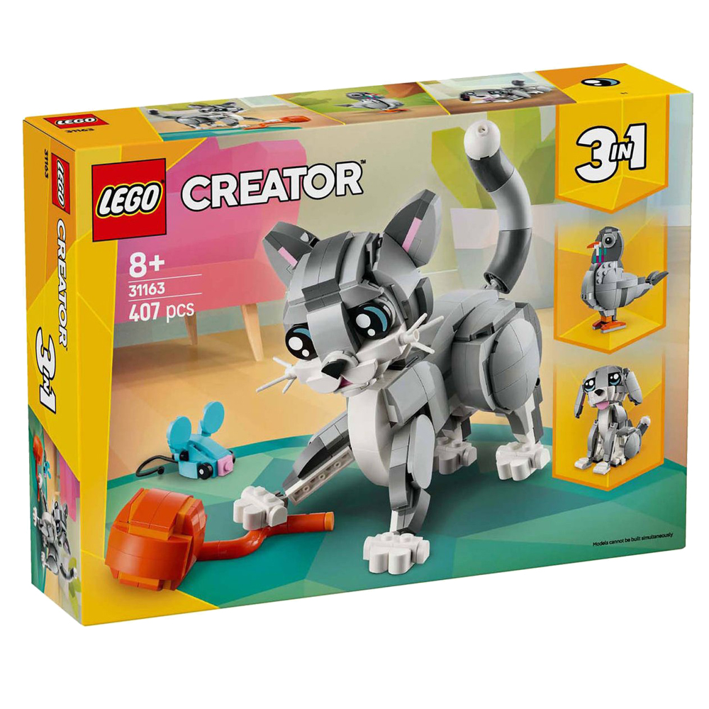 Potěšte milovníky domácích mazlíčků od 8 let rozkošnou stavebnicí LEGO® Creator 3 v 1 (31163) Hravá kočka. S touto stavebnicí domácích mazlíčků si postavíte roztomilou kočku s pohyblivou hlavou, ušima, ocasem a nohama a doplňky, včetně misky na krmení, myši a klubíčka, a děti se s ní můžou hrát na zábavné příběhy.