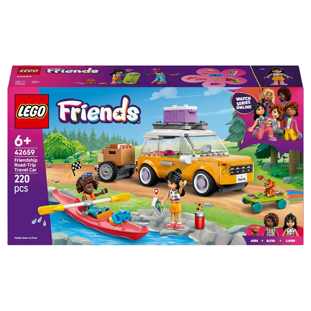 Vstupte do světa dobrodružství se stavebnicí LEGO® Friends (42659) Výlet v autě s přáteli pro holky a kluky od 6 let. Tato akcí nabitá stavebnice obsahuje model auta s přívěsem, 2 minipanenky LEGO Friends, roztomilou figurku štěňátka a spoustu doplňků, které inspirují k zábavnému hraní.