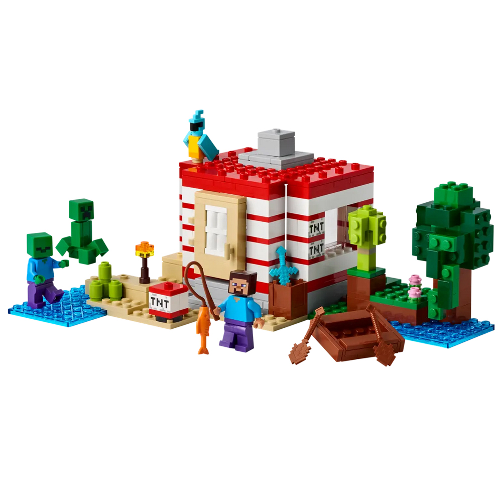 Sestavitelný dům se nachází v biomu džungle v Minecraftu a vypadá jako velká verze ikonického TNT ve hře. Spínač na boku umožňuje dětem aktivovat funkci výbuchu TNT, která vyhodí do povětří celý dům. Až se usadí prach, děti můžou dům znovu postavit, aby se připravily na další dobrodružství. Minifigurky Stevea, Creepera a zombie inspirují ke kreativnímu hraní a akčním bitvám.