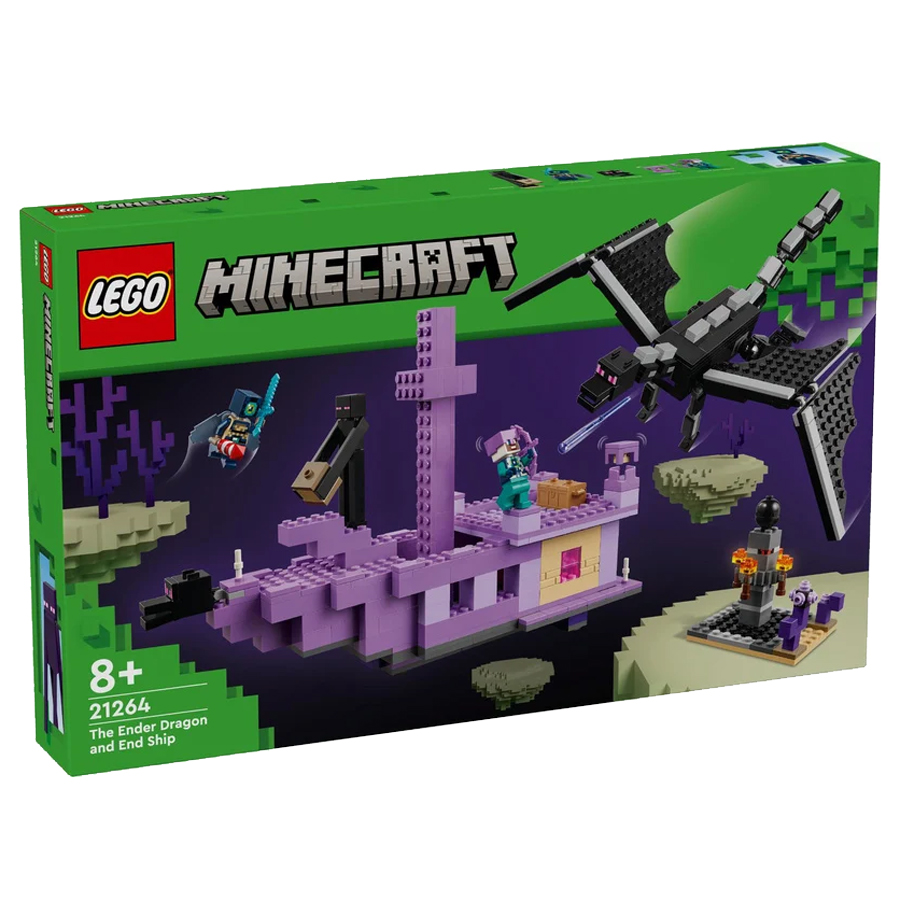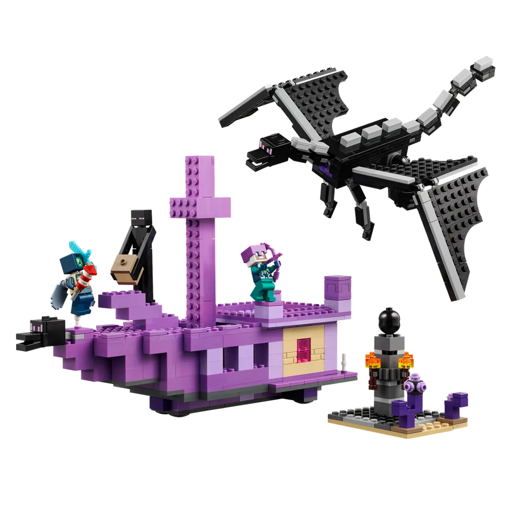 Hráči vstoupí do nebezpečného biomu End, kde se musí postavit drakovi z Enderu. Všechny končetiny této figurky s klouby jsou pohyblivé a upravitelné. Loď z Endu má plně vybavený interiér, do kterého vstoupíte skrz zvedací střechu a otevírací boční strany. Dračí hlavu z přídě lze odejmout a nosit ji jako přilbu. Uvnitř děti najdou varný stojan s lektvary zdraví. Mezi postavy z Minecraftu najdete průzkumníka Enderu s krovkami a ohňostrojovou raketou, rytíř zEnderu, Shulker a Enderman. Součástí je také cenné dračí vejce. Více digitální zábavy si stavitelé užijí s interaktivní aplikací LEGO® Builder, ve které mohou přibližovat a otáčet modely ve 3D a sledovat svůj pokrok.