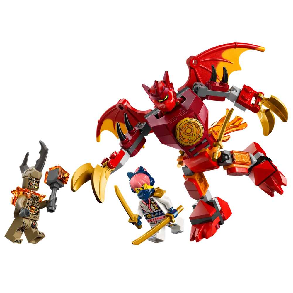 Tato parádní nindžovská hračka obsahuje také 3 minifigurky: Kaie vyzbrojeného 2 meči, Soru se 2 meči a pozemskou příšeru s drápy, díky kterým si děti užijí hodiny dobrodružství při přehrávání scén ze 4. řady seriálu NINJAGO Dračí povstání.