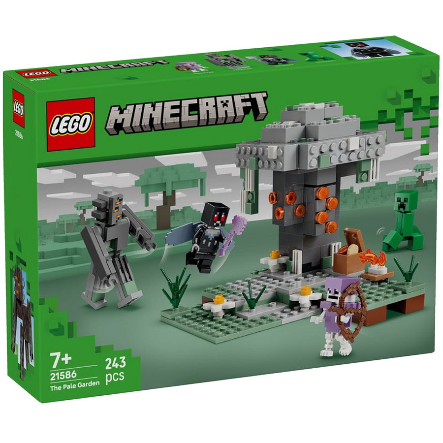 Se stavebnicí LEGO® Minecraft® (21586) Bledá zahrada pro holky a kluky od 7 let hráči vstoupí do jednoho z nejpodivnějších a nejúžasnějších biomů hry Minecraft®. Figurka Creakinga z kostek LEGO se postaví hrdinnému okřídlenému mothmanovi zatímco Creeper™ a Kostlivec se potulují po bledé zahradě. Bledý dub je pokrytý mechem a květy a obsahuje vzácnou pryskyřici a vzácné srdce, které děti můžou získat buď odstraněním kůry, nebo stisknutím tlačítka na zadní straně stromu, které srdce vysune.