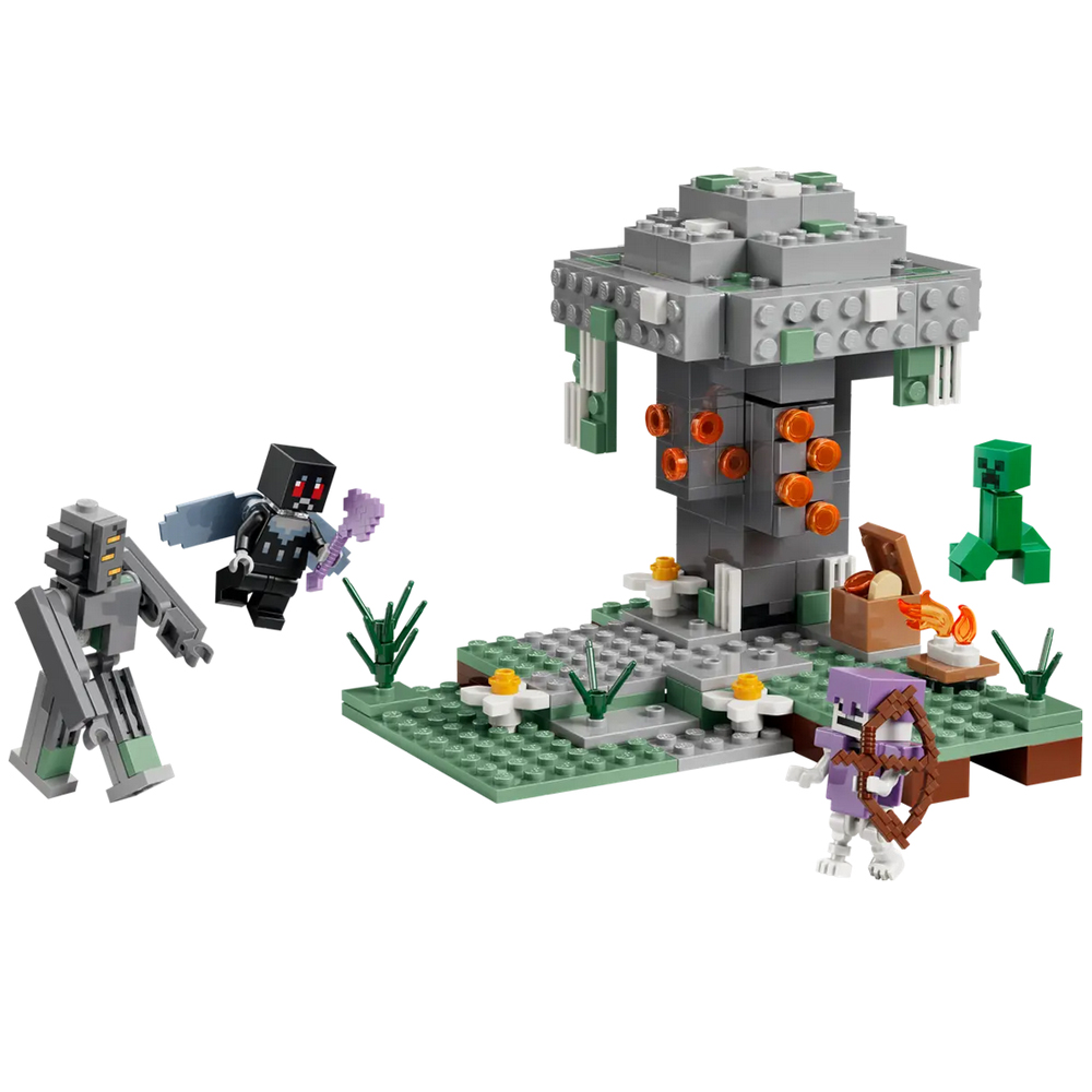 Minifigurka Mothmana má krovková křídla a drží kouzelnou sekeru a minifigurka Kostlivce má diamantovou zbroj a luk. Mezi další doplňky, které podněcují fantazii, patří truhla, hrudky pryskyřice, táborák a vepřová kotleta.