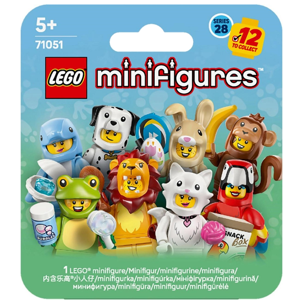 LEGO® 71051 z 28. série minifigurek představuje kolekci dvanácti roztomilých zvířecích postaviček, které jsou určeny dětem od pěti let. Každá figurka je pečlivě zpracovaná do detailu a představuje různá zvířata v kostýmech, například papouška, lva, žábu, krokodýla, dalmatina, zlatou rybku, králíčka, páva, kočku, koalu, delfína a opici. Každá z minifigurek je dodávána v samostatné tajemné krabičce, což zvyšuje napětí při jejich sbírání a otevírání. Součástí každé figurky je také jeden nebo více doplňků, které podtrhují její charakter a umožňují rozmanité způsoby hraní.